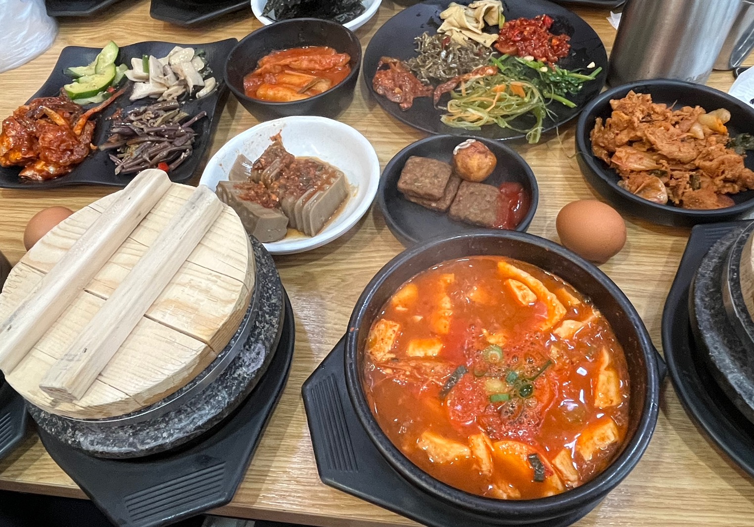 돌솥밥에 물까지넣고 밥이랑 순두부찌개를 먹는데